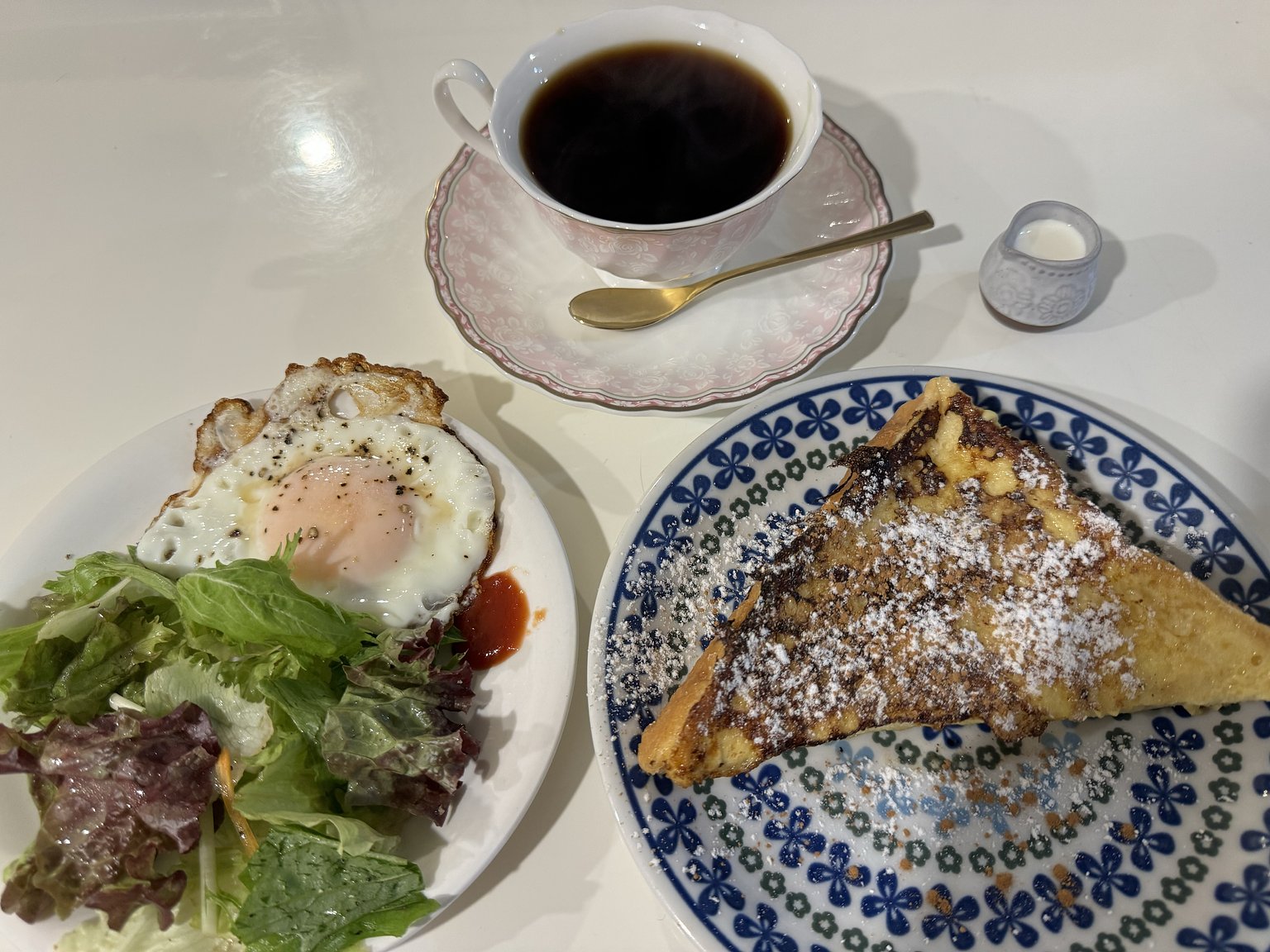 Ise Jingu에 가기 전에 숙소에서 도보로 약 3분 거리에 있는 Cafe Bianca에서 프렌치 토스트 아침 식사를 즐겼습니다.