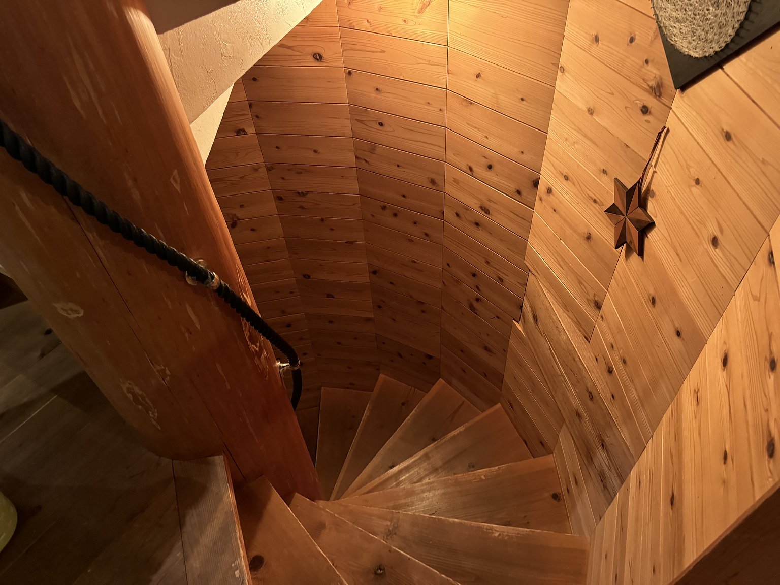12각형의 나무로 된 따뜻한 건물로, 중앙 안마당에 상징적인 나무가 있었습니다.