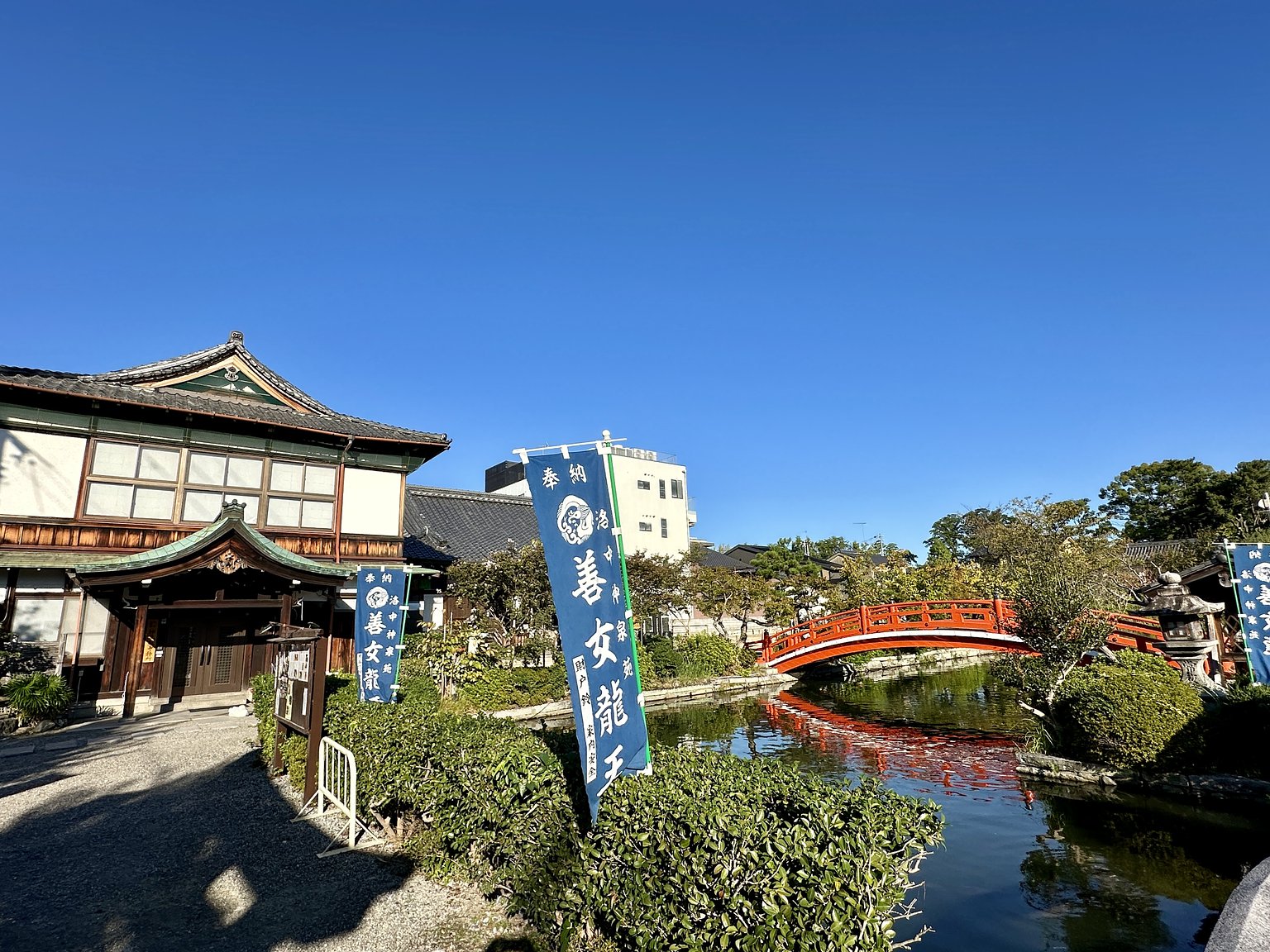 용신님이 있는 큰 연못에는 오리와 거위가 있어 아침부터 힐링할 수 있습니다!