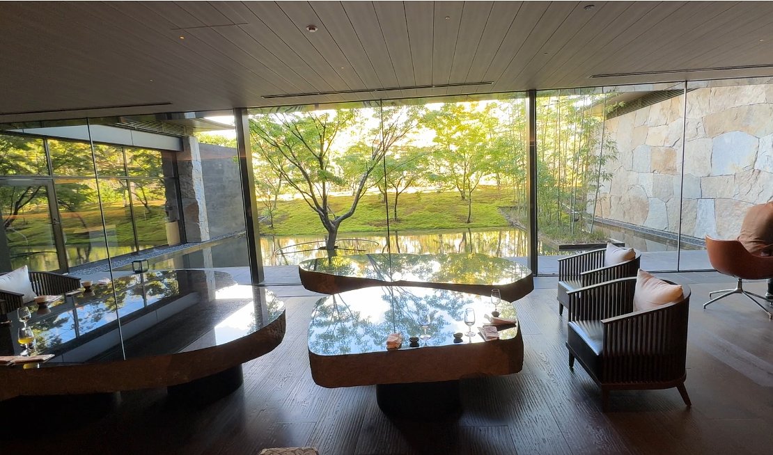 대나무 숲 정원이 펼쳐진 로비는 선(禪)을 상징하는 미술관 같은 공간입니다.