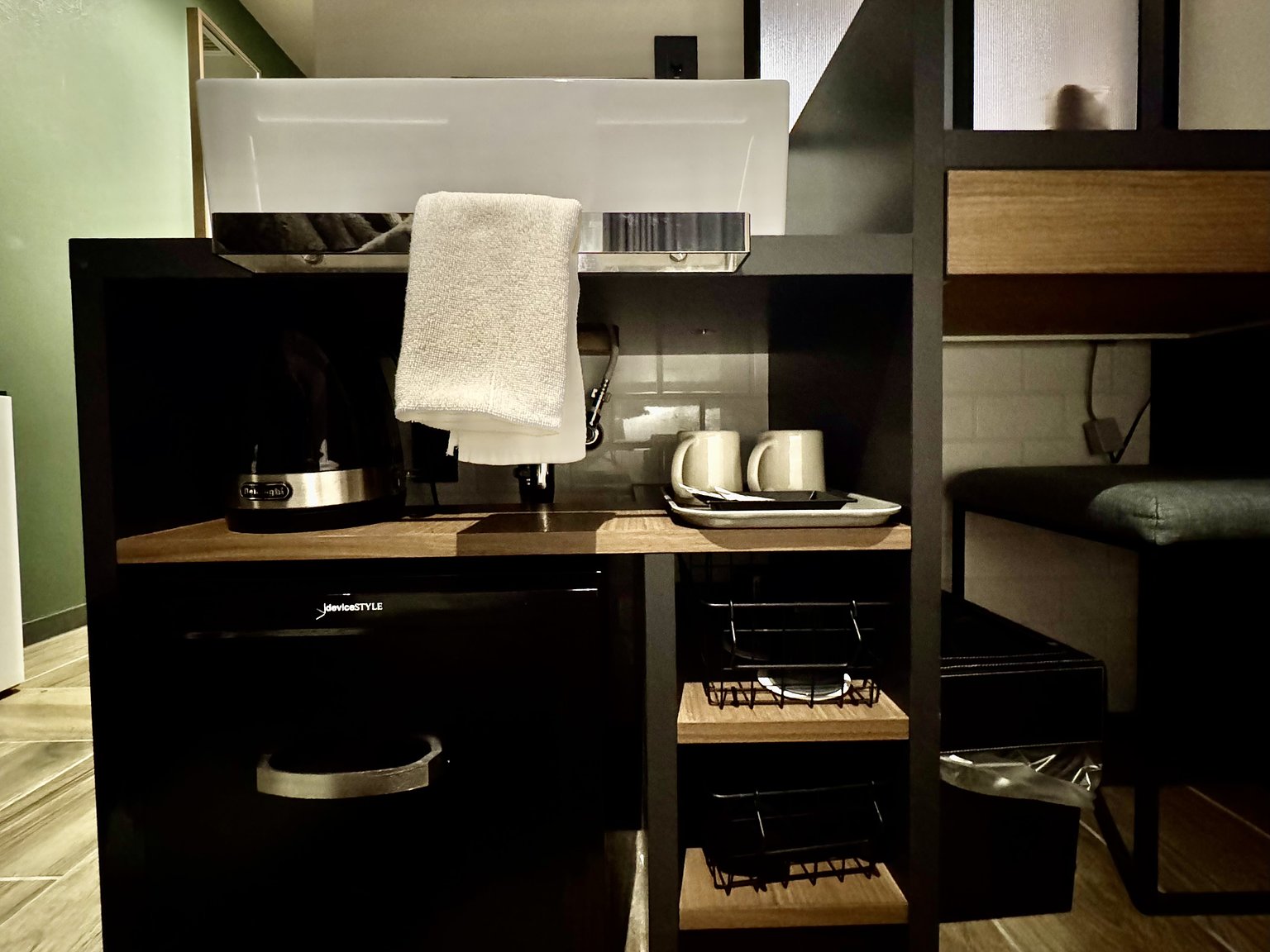방은 새롭고 깔끔했으며 넓지는 않았지만 혼자 있어서 편안하게 지낼 수 있었습니다.