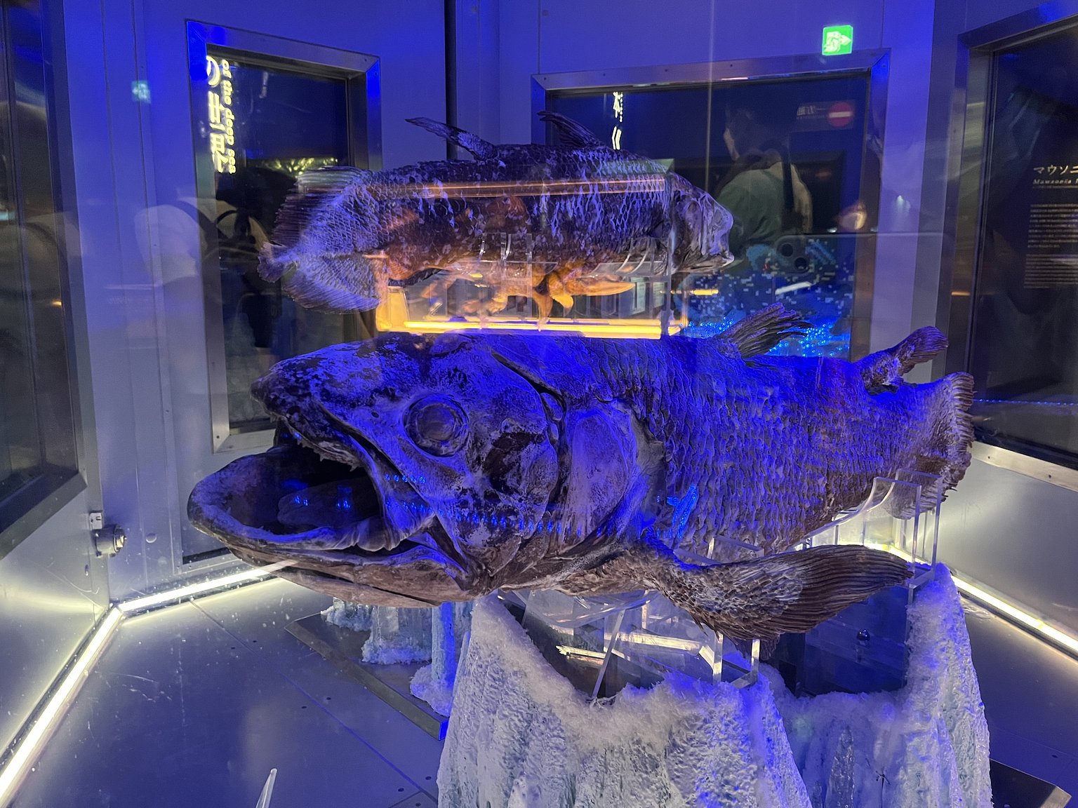 여기서만 볼 수 있는 얼린 코엘칸스 뼈대 표본을 보니 감동적이었고, 힘이 느껴졌다!