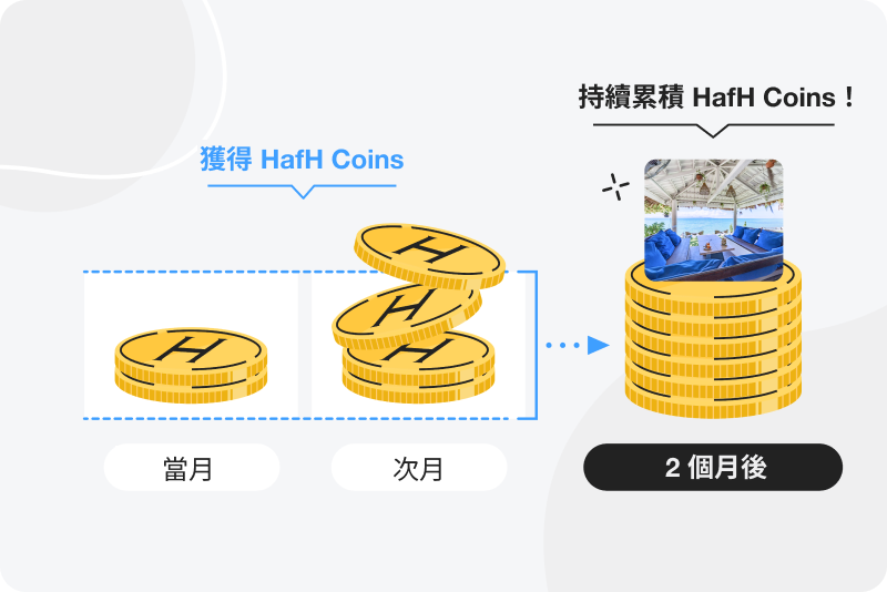 HafH 是一項會員制服務,透過設定 Wallet 功能中的定期累積 Coin,每個月都能獲得 Coin。