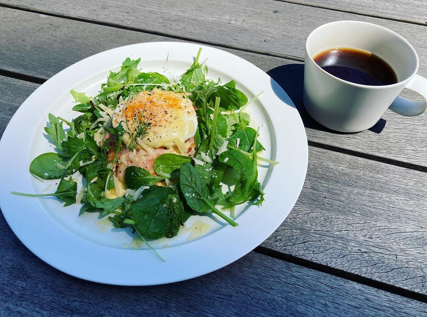 我在酒店一樓咖啡廳的河畔露台上享用了早餐。