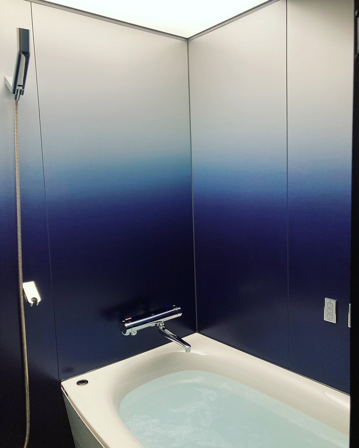浴室內置了藍牙音響,燈光可調,十分時尚。