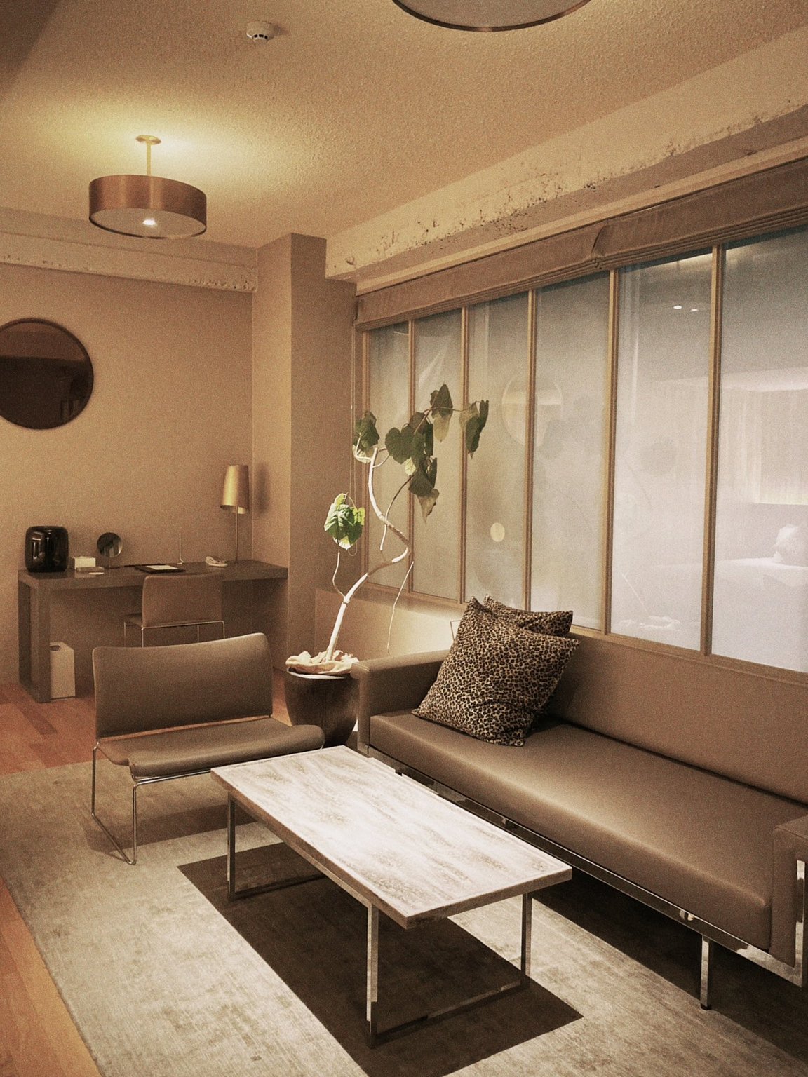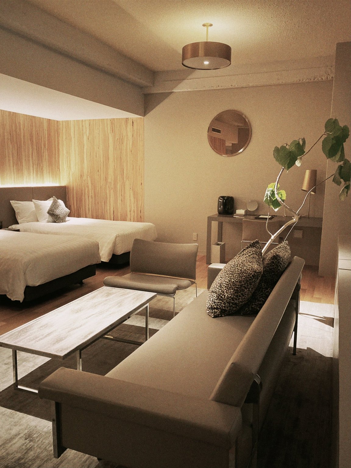 一間改造自北濱老建築的河畔酒店。我入住了南向的KITAHAMA Residence,房間色調為淺駝色。