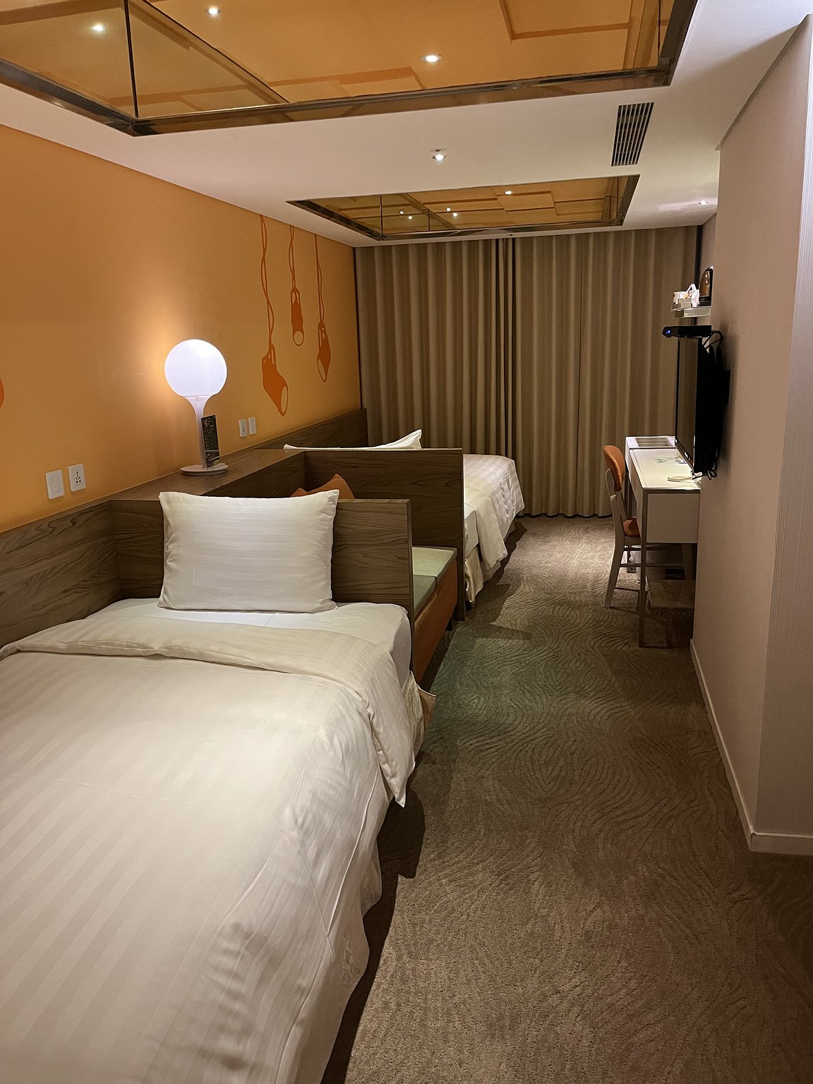 幾天前我住了一間雙人床的房間,但雙床房的床位配置很有趣。