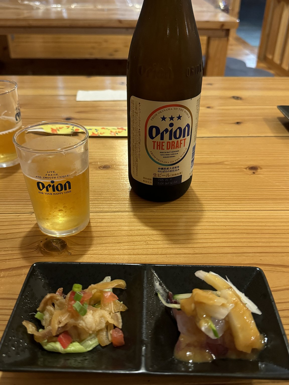 晚餐在酒店還是酒店附近的居酒屋間掙扎,不過因為還是想要去沖繩料理的居酒屋,所以訂了酒店外附近的居酒屋。