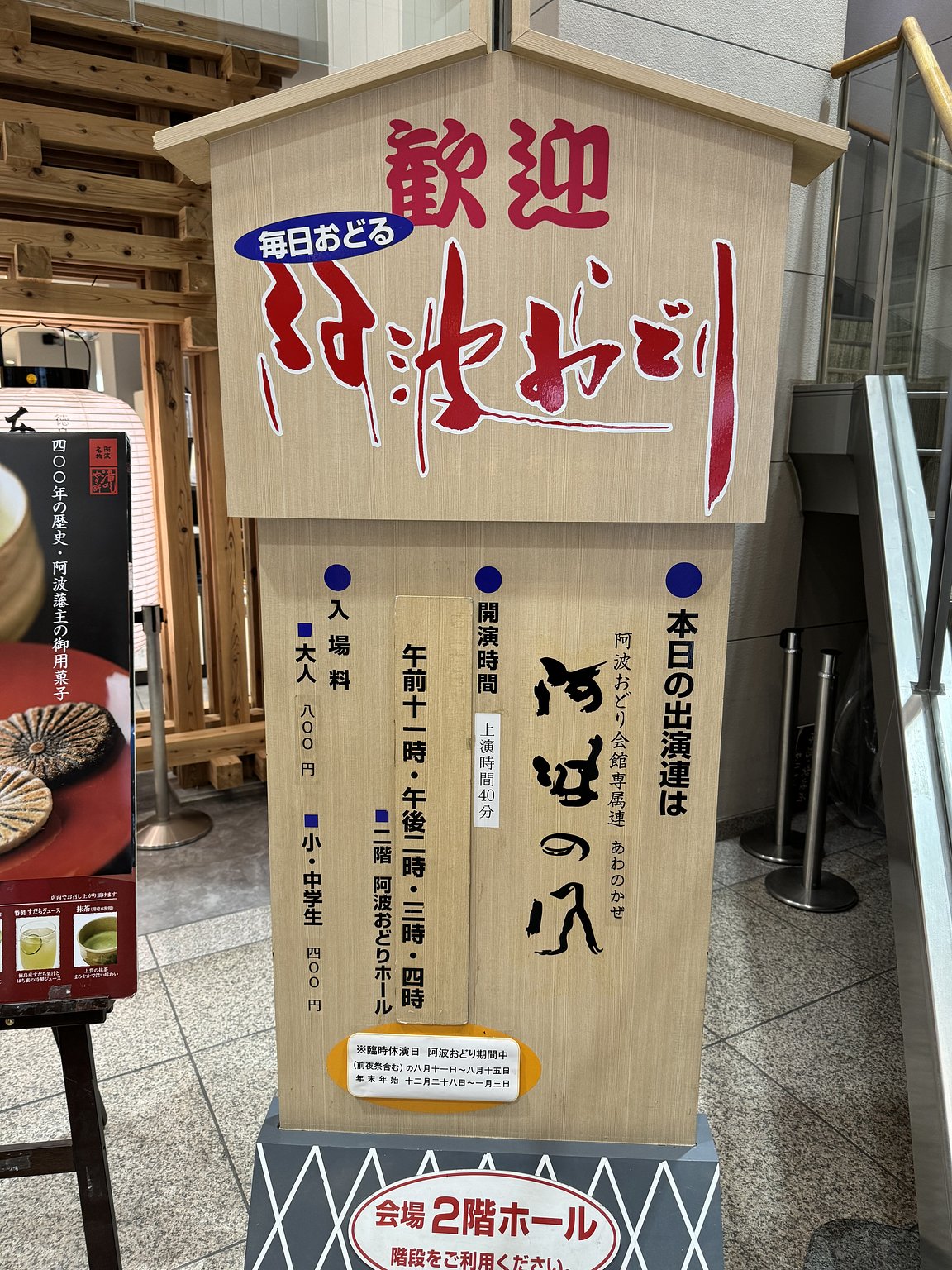 每天都有各種團體表演阿波舞。我們購買了門票,並在一樓的商店購買紀念品,然後參觀了三樓的阿波舞博物館。我們在體驗區以遊戲的方式練習太鼓,還在VR中享受阿波舞。
