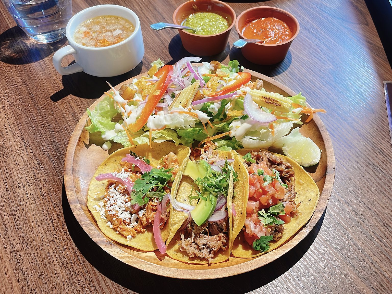 午餐是在人形町哈西哥樓的2樓「Kitade Tacos & Sake」享用3種塔可的午餐套餐,晚餐則是在「金蠍人形町店」享用帶有山椒香的汁無擔擔麵。