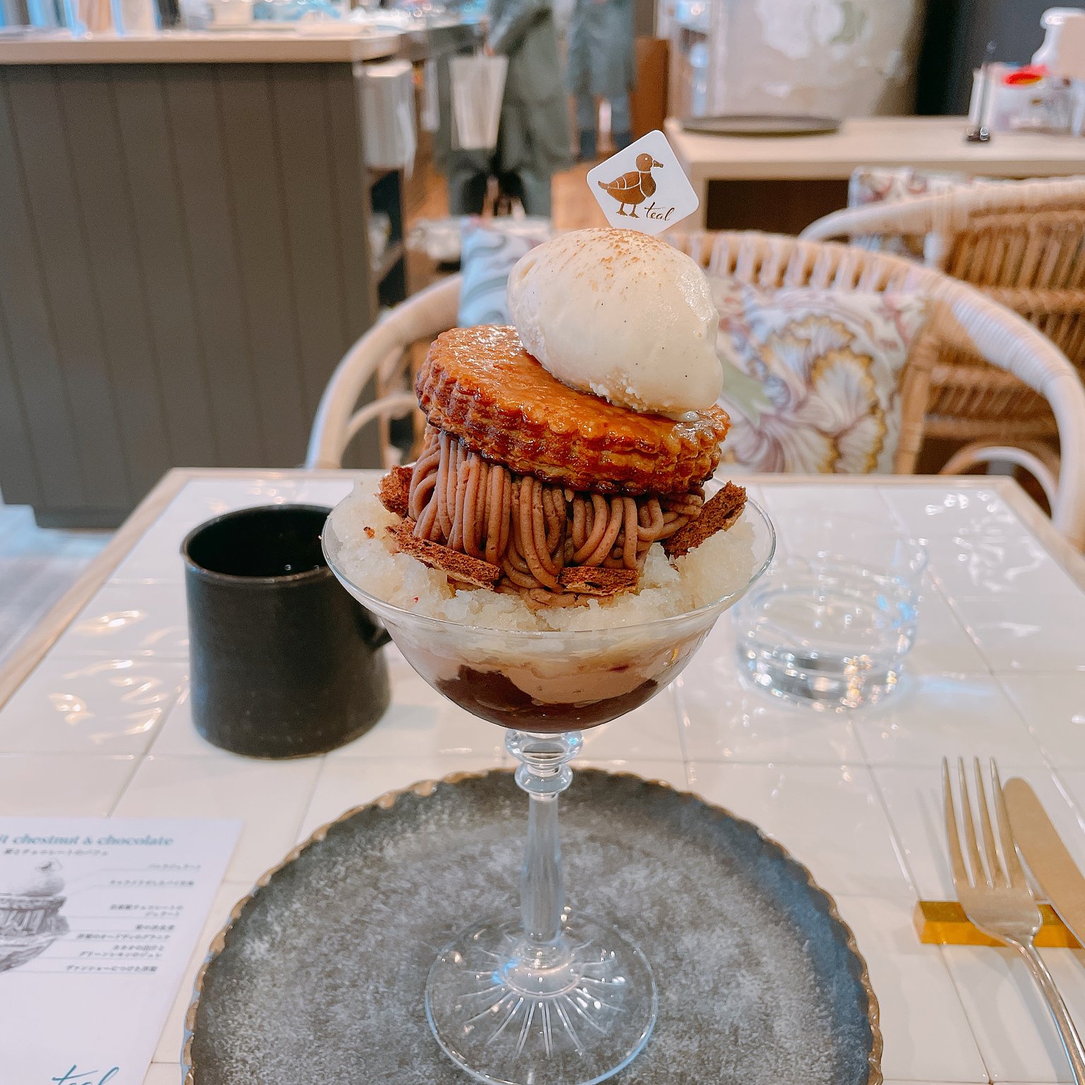 在一棟復古建築中的「teal」享用冰淇淋和甜點,並購買了巧克力棒作為紀念品。