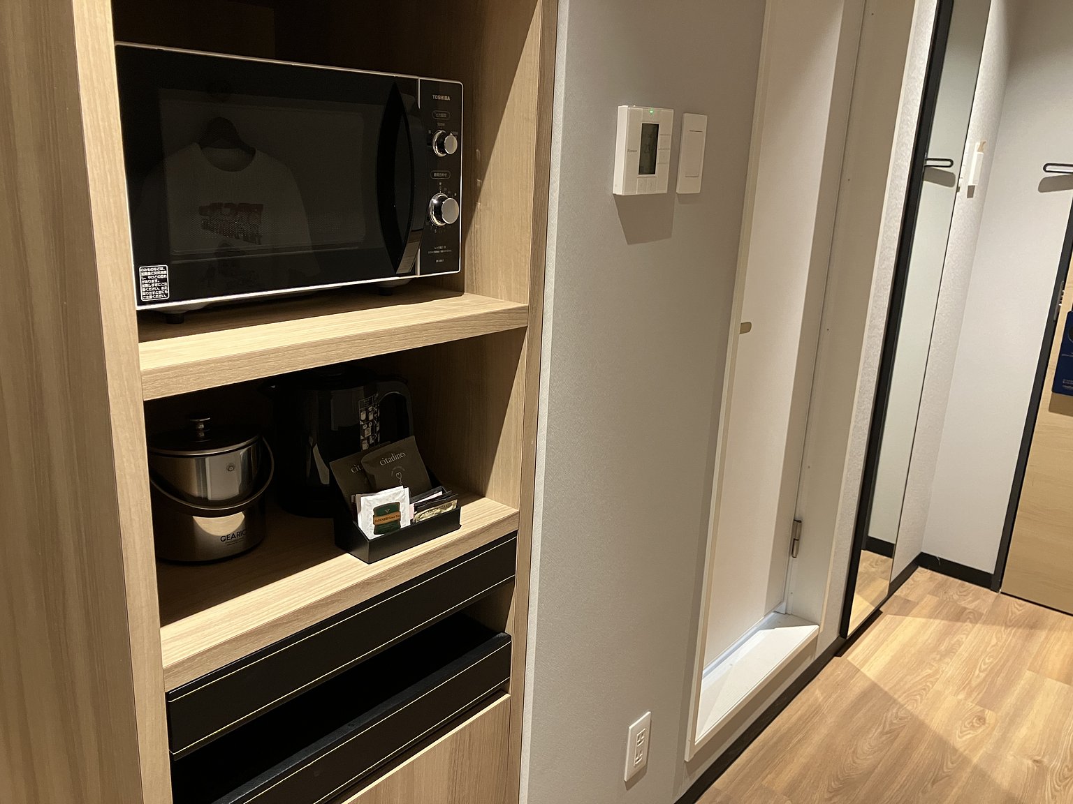 房間很時尚,裡面有微波爐,非常適合放鬆。 此外,酒店內有健身房,如果你在一樓的餐廳吃得太多或喝得太多,這裡正好可以運動。