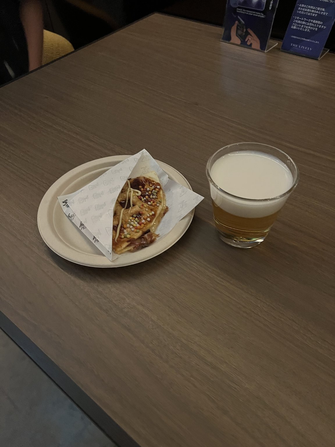 回到酒店時我很累,但精力充沛又活潑的員工正發放免費啤酒,那杯啤酒美味至極!🤣他們還貼心地為我孩子製作了章魚燒華夫餅作為小吃,讓我鬆了一口氣。真的非常高興!優秀的服務!🍺