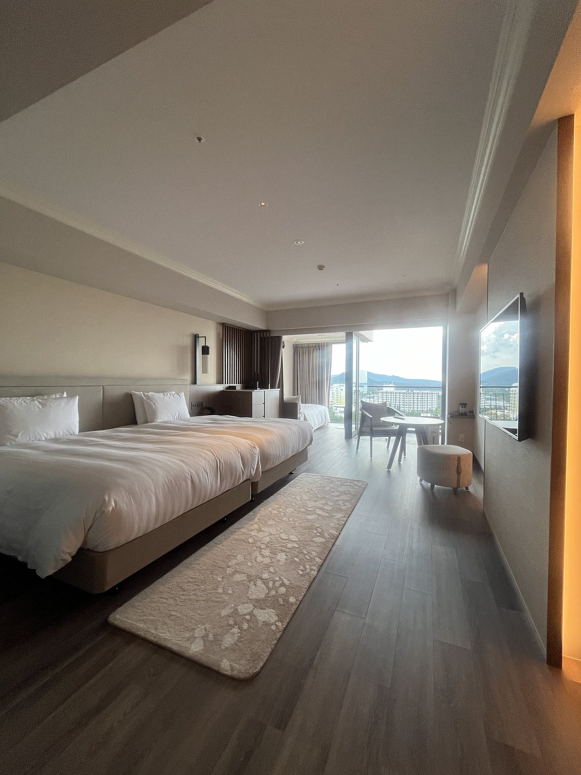 這次我和孩子們在14樓的俱樂部房間住了一晚。我們在14:00左右到達酒店,通常是15:00入住。剛到達就享用了香檳和點心的迎賓飲料,聽著設施說明……這時我已經感覺到「啊,真的值得奮發!」感受到他們提供的款待。隨後即使在入住前也可以使用游泳池和休息室。