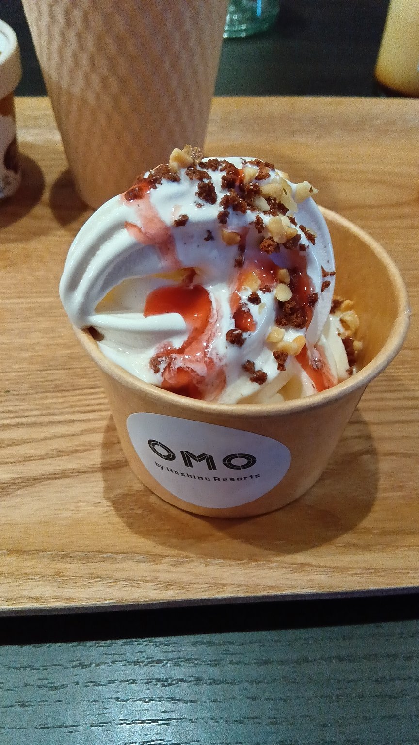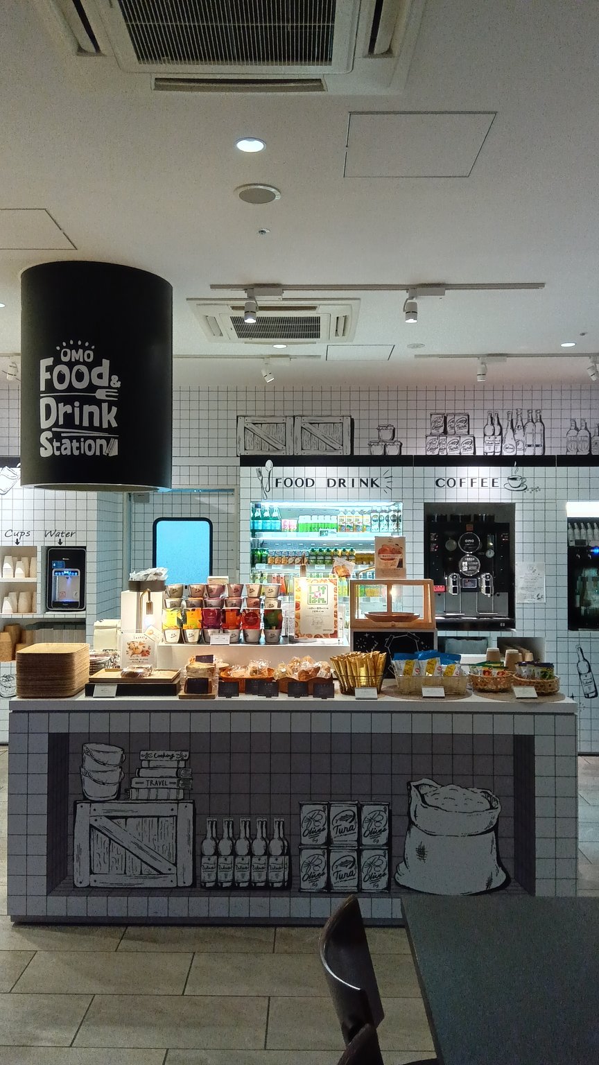 2、一樓的OMO門廳是咖啡及輕食區,有各種北海道特產、美食、飲料和商品販售,並且可以自助結算(電子結算),可以選擇當場食用或帶回房間,十分方便。