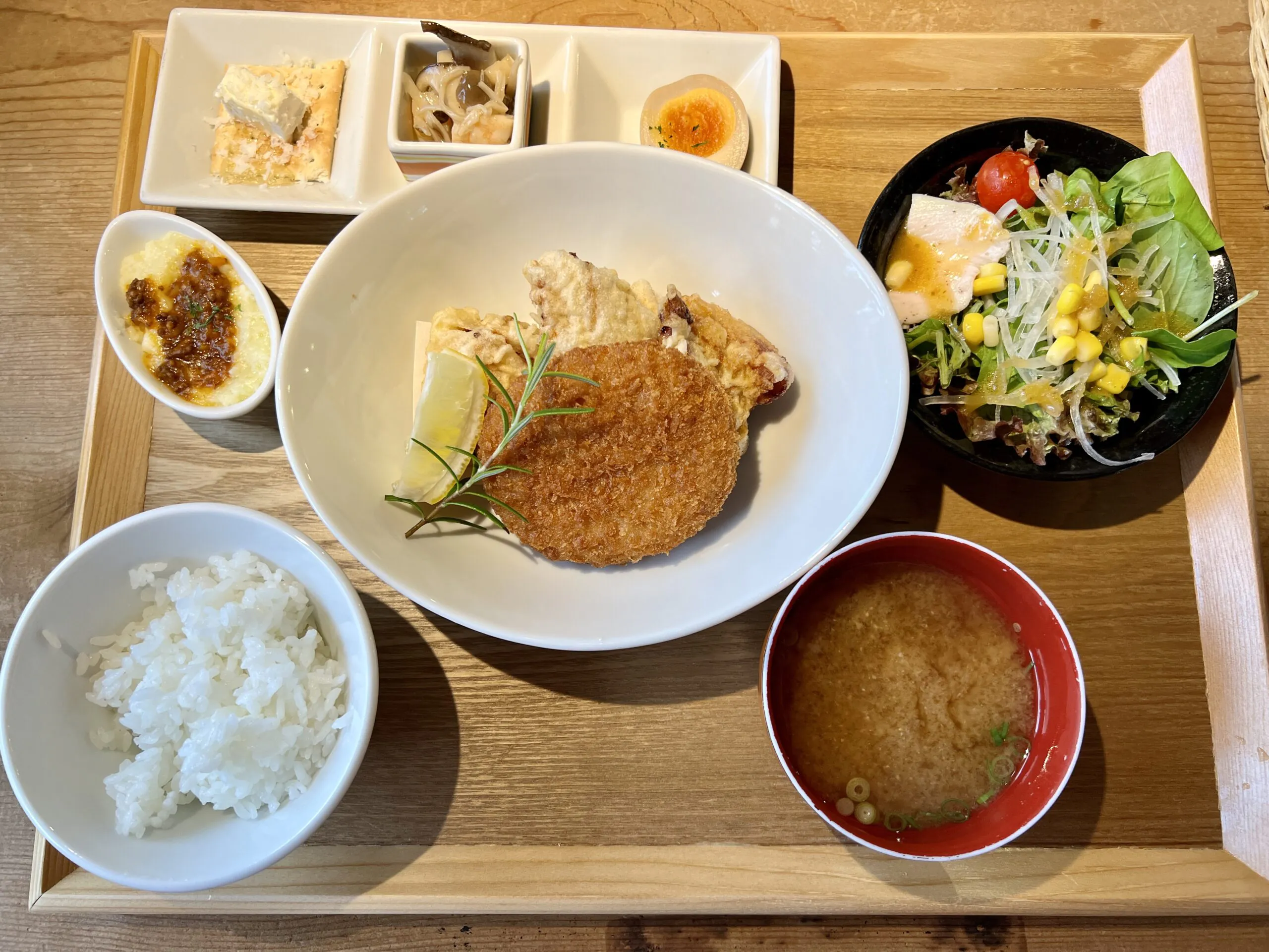 我點的是牡蠣奶油可樂餅和龍田揚定食。牡蠣奶油可樂餅裡面有剁碎的牡蠣,讓我能充分體會到牡蠣的鮮美,非常好吃。