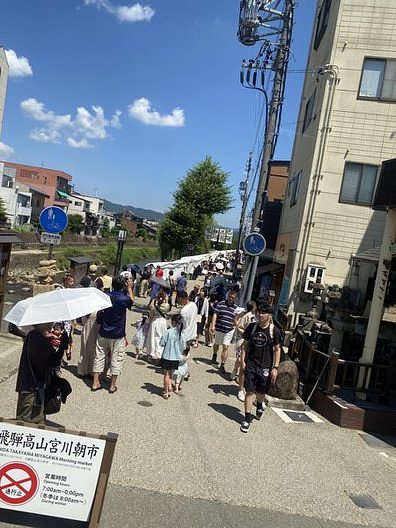 在高山的古街保存區漫步。 我最推薦的紀念品是岩城的早蕨(蕨餅)。