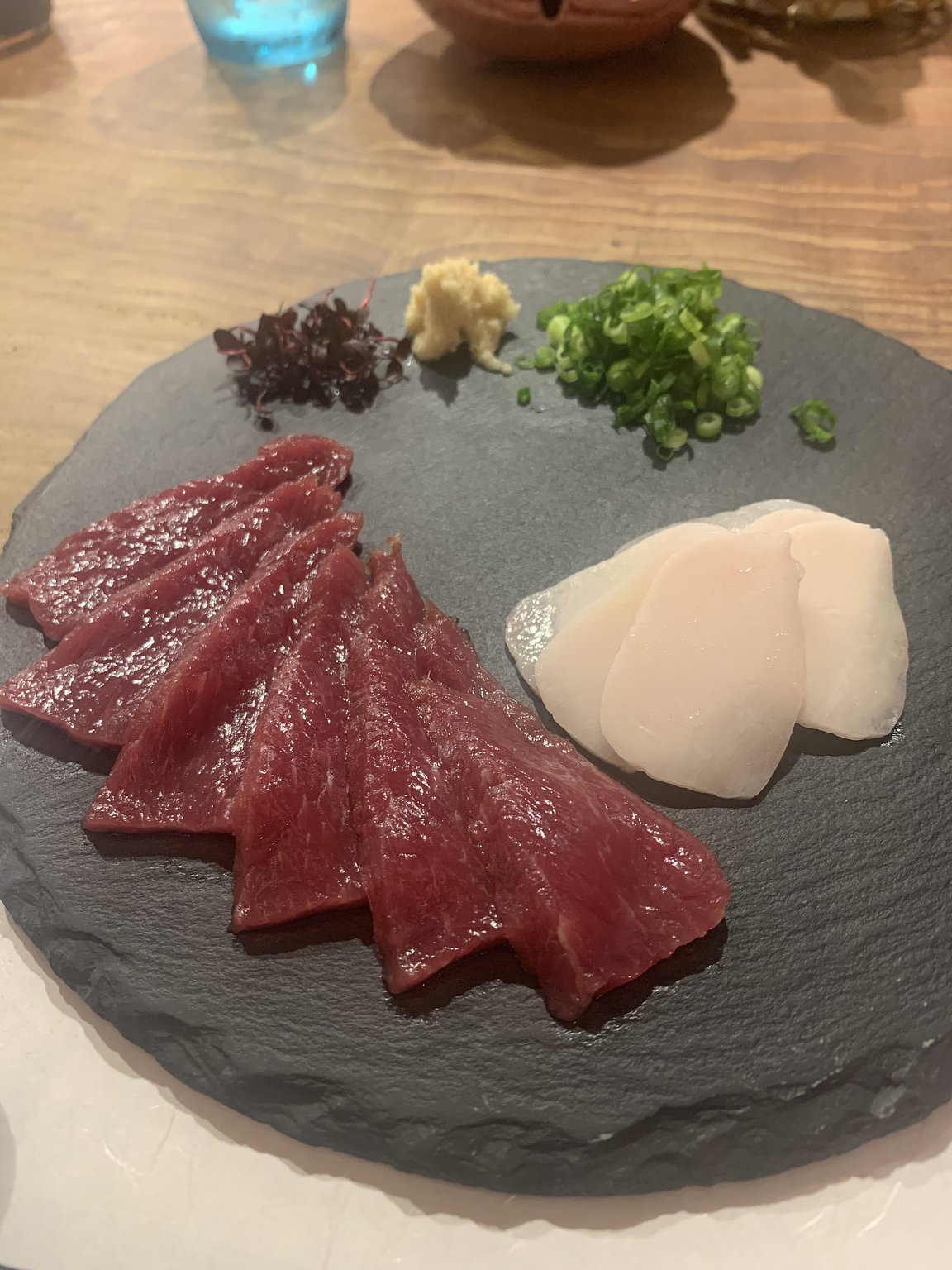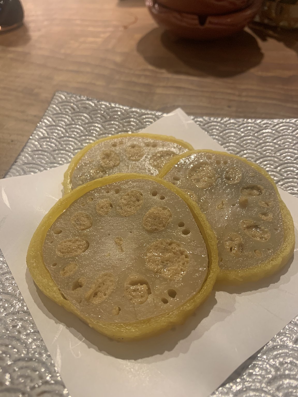 我會在不同地方找到自己喜歡的商店並不斷回訪。在熊本,有一家小餐館。提供辛味蓮根、馬刺、生魚片等經典熊本當地料理,還有每日更換的小菜,讓我能和燒酒一起度過愉快的時光。
